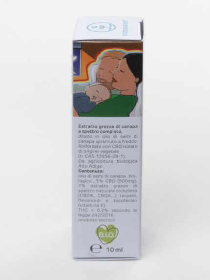 Descrizione ecopassion® CBDphytoCOMPLETE© 5% è un estratto grezzo di canapa naturale a spettro completo, in forma aminoacida rinforzato con CBD isolato di origine vegetale organica (500 mg Cannabidiolo) e diluito in olio di canapa certificato BIO. Coltivato e prodotto in Alto Adige. Ingredienti Olio di semi di canapa biologico, 5% CBD (500 mg), 7% estratto grezzo di spettro naturale completo (CBDA, CBGA…) terpeni, flavonoidi e tocoferolo (vitamina E). THC < 0,2% secondo la legge 242/2016. Prodotto tecnico. Formato 10 ml o 30 ml.