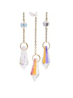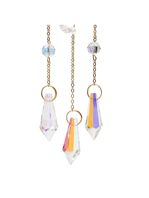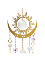 Questo acchiappasole presenta un motivo traforato decorativo con sole e mezzaluna in metallo dorato. Al centro pende una sfera in vetro cristallo che cattura e riflette splendidamente la luce del sole, creando un effetto luminoso scintillante e suggestivo in casa.