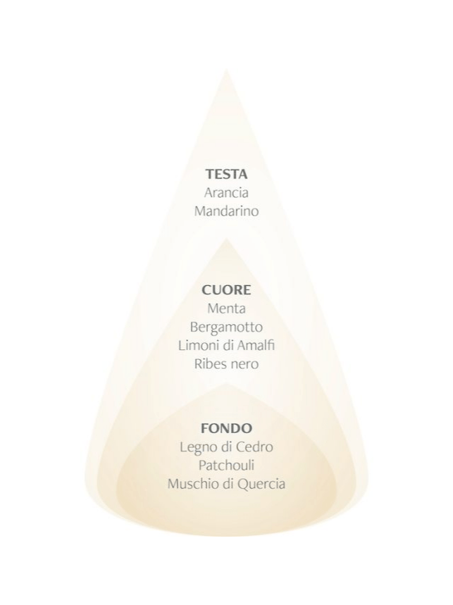 Un gioco dolce e amaro prende vita tra le note del Bergamotto, del Mandarino, dell’Arancia e del legno di Cedro. Un’intensità frizzante che ricorda la rugiada delle mattine estive.