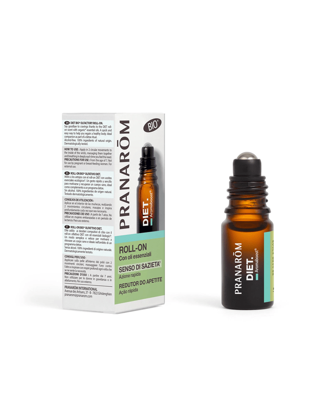 Roll-on Pranarôm Diet con oli essenziali naturali, formulato per favorire il senso di sazietà e supportare la gestione dell’appetito durante regimi alimentari controllati. La sinergia di oli essenziali BIO agisce rapidamente contribuendo a ridurre gli attacchi di fame e facilitare uno stile di vita più equilibrato. Il pratico formato roll-on permette un utilizzo immediato e discreto, ideale da portare sempre con sé per sostenere la dieta in modo naturale.