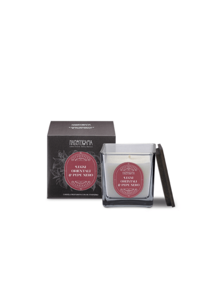 Candela profumata con oli essenziali al raffinato mix di oud e rosa di Damasco, presentata in elegante bicchiere di vetro con coperchio in legno; ideale per creare un’atmosfera sofisticata e romantica, questa candela artigianale è perfetta come accessorio d’arredo e come idea regalo esclusiva per chi ama fragranze intense e avvolgenti.