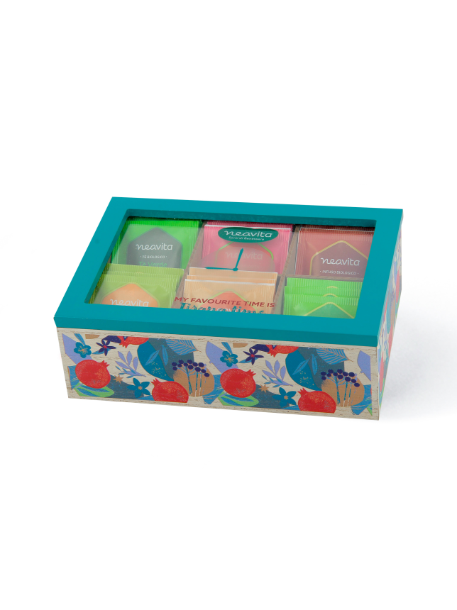 Contiene 5 filtri per tipo di: Tè verde Matcha Lemon, Fragola e Ibisco, Rooibos Arancia e Cannella, Mandarino e Zenzero, Mela e Cannella e Agrumi di Sicilia.