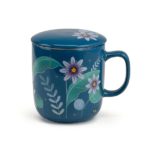 Tazza in ceramica con coperchio dal design elegante e decorazione floreale, perfetta per tè, tisane e infusi; questa mug floreale in ceramica smaltata verde petrolio unisce stile e funzionalità, rendendola un accessorio da cucina ideale come regalo originale per amanti del tè e collezionisti di tazze artistiche.