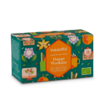 Fiori di ibisco*, pezzi di mela*, , rizomi di zenzero*, scorze di arancia*, bacche di rosa canina*, aroma naturale di arancia*,rooibos*, pepe nero*, aroma naturale di carota*, olio essenziale di mandarino*, aroma naturale di zenzero*. *da agricoltura biologica