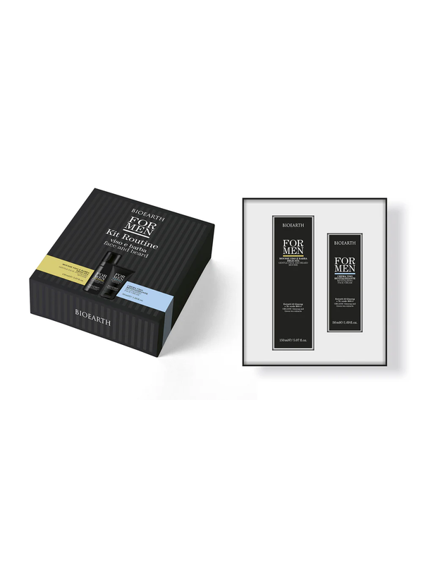 Il Kit Routine Viso e Barba Bioearth FOR MEN è la soluzione completa per la cura quotidiana della pelle maschile. Include mousse detergente delicata e crema viso energizzante con estratti naturali, studiati per detergere, idratare e proteggere la pelle maschile. Un trattamento efficace, pratico e di qualità certificata.