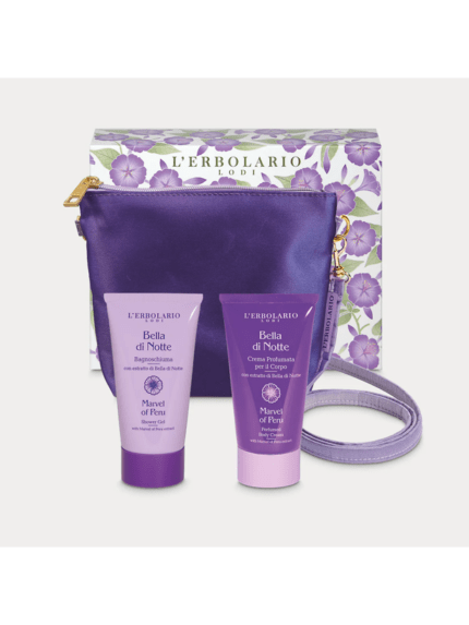 Un imperdibile kit donna con due cosmetici della linea Bella di Notte ideali per una serata speciale: il Profumo Solido dalle note fiorite e vanigliate e la Crema Corpo Scintillante, che idrata la pelle lasciandola ricoperta di finissimi glitter con un effetto illuminante. La pochette in tessuto viola impreziosisce il kit, rendendolo perfetto come idea regalo per lei.