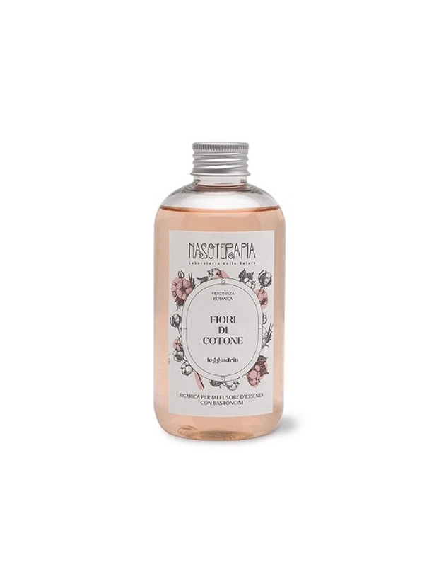 Lasciati avvolgere dalla delicatezza della fragranza Fiori di Cotone di Nasoterapia, una ricarica per diffusore che trasmette sensazioni di purezza, comfort e benessere. L’apertura è fresca e leggera, con fiori di cotone e fiori d’arancio, seguita da un cuore morbido e cipriato di talco, mughetto, rose bianche e gelsomino. La base calda di muschio quercino e ambra completa la composizione, regalando una profumazione persistente e avvolgente. Perfetta per chi ama i profumi puliti e rassicuranti, è l’ideale per ambienti come camera da letto, bagno o nursery.