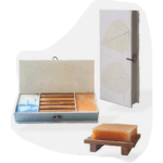 In questa confezione in carta di riso trovate un portasapone piccolo in ceramica e 4 saponette da 25 g l’una.