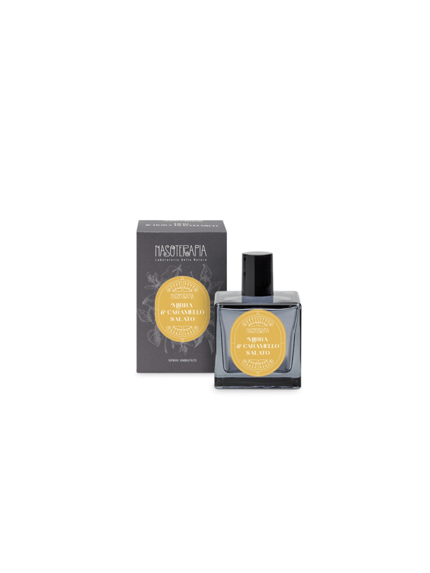 Spray ambiente Nasoterapia “Ambra & Caramello Salato”, una fragranza gourmand e raffinata che unisce dolcezza e sensualità. Ideale per chi cerca un profumo avvolgente e persistente per personalizzare ambienti come soggiorno, camera da letto o studio. Il design elegante della bottiglia si abbina a una formula di alta qualità, perfetta per creare un’atmosfera calda e accogliente.