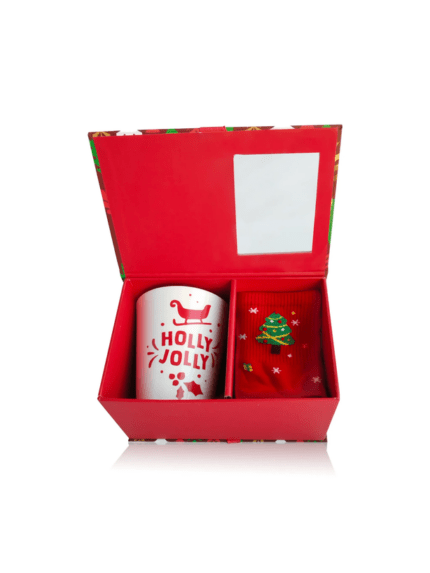 Scopri il set natalizio “Holly Jolly”, l’idea regalo perfetta per le festività! Con una tazza in ceramica a tema e calze rosse decorate con simpatici motivi natalizi, il tutto racchiuso in una confezione festiva con fiocco, questo set è ideale per creare un’atmosfera calda e gioiosa. Regalo perfetto per amici e familiari, unisce praticità e spirito natalizio. Ideale per colazioni, tisane invernali o momenti di relax davanti al camino.