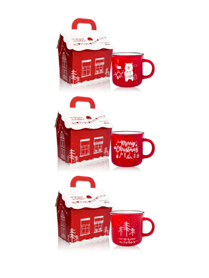 Tazza natalizia in metallo smaltato con confezione regalo a forma di casetta, disponibile in tre varianti grafiche: orso polare tra le montagne, “Merry Christmas” con decorazioni festive e “Warm Wishes” con alberi innevati. L’accessorio perfetto per tè o cioccolate calde nei mesi invernali. Questa tazza in stile natalizio unisce estetica e funzionalità, ideale da collezionare o regalare per creare un’atmosfera calda e accogliente.